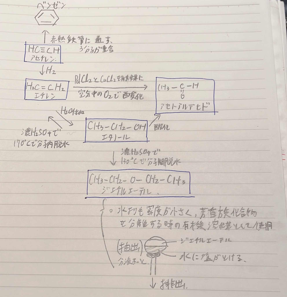 ・アセチレン、エチレン、エタノール、アセトアルデヒド、ジエチルエーテル周辺