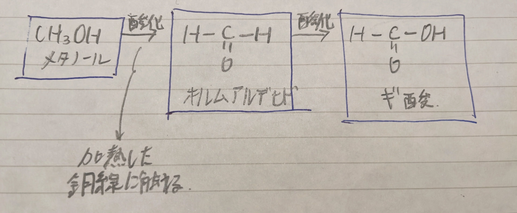 ホルムアルデヒドはビニロンやフェノール樹脂のあたりでも出てくるので、割と見かけますがギ酸はあまり出て来ないイメージです。構造決定問題で出てくるので必ず押さえておきましょう。例えば銀鏡反応を示すカルボン酸といったらギ酸。