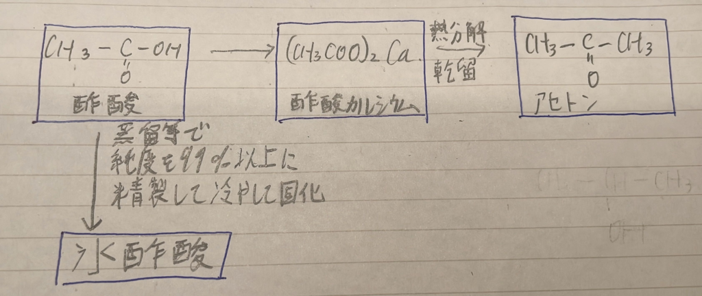 ・酢酸、酢酸カルシウム、アセトン、氷酢酸